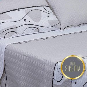 Cubrelecho Español Prensado Microfibra Doble 140 cm Gris con Figuras Grises y Blancas