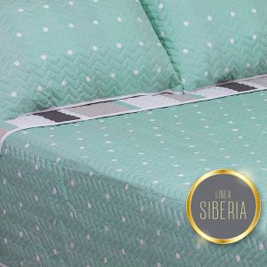 Cubrelecho Español Prensado Verde Menta para Cama Doble 140 X 190 Cm Doble Faz de Lineas Y Puntos