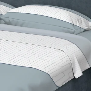 Juego de Sabanas Algodón 250 Hilos Queen 160 cm Blanco con Líneas y Círculos