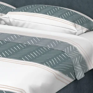 Juego de Sabanas Algodón 250 Hilos King 200 cm Blanco con Líneas y Círculos