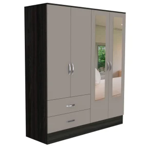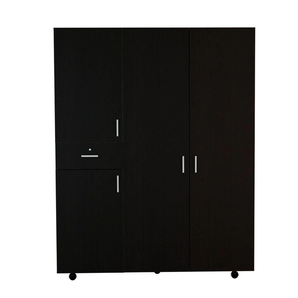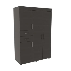El antartic color wengue es un clóset ideal para tu habitación. Cuenta con cuatro puertas y un cajón con manija metálica. En su interior podrás encontrar doce compartimientos con espacio suficiente para guardar tus pertenencias como ropa, libros, tendidos, entre otros. Uno de sus compartimientos cuenta con un tubo metálico que permite colgar prendas para evitar que se arruguen. Los de la parte inferior son perfectos para cumplir la función de zapatero.