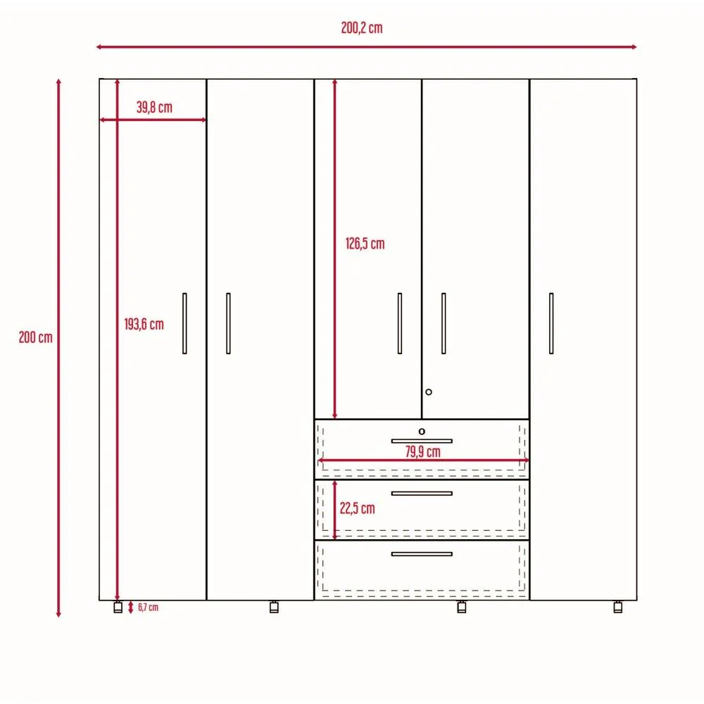 El clóset Serrat es uno de los más imponentes de la categoría. Podrás disponer de gran espacio de almacenamiento gracias a sus tres cajones organizadores. También cuenta con tres tubos cromados para colgar ropa y evitar que se arrugue. Sus cerraduras son metálicas, lo que hace que perduren muchisimo más y ni hablar de la combinación de colores Rovere y Blanco que lo harán verse elegante.