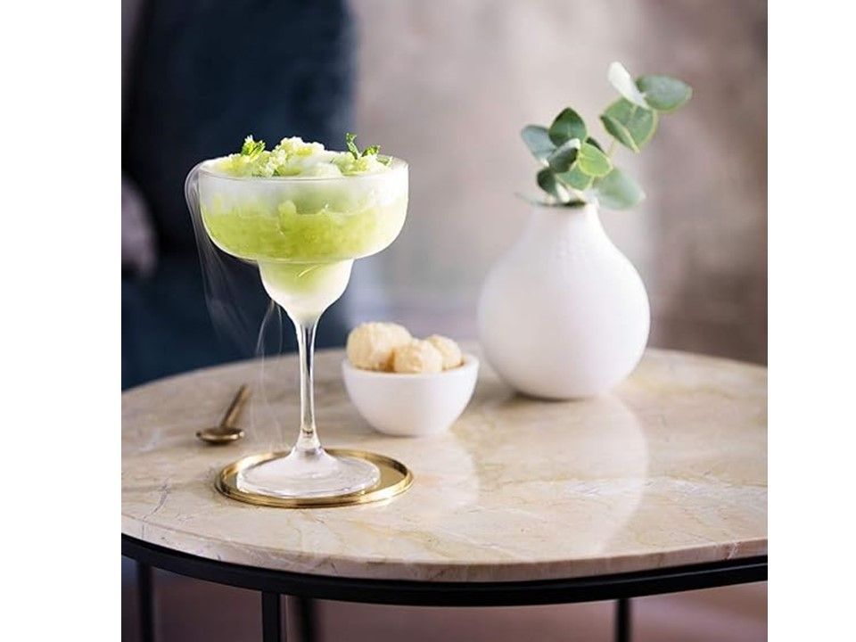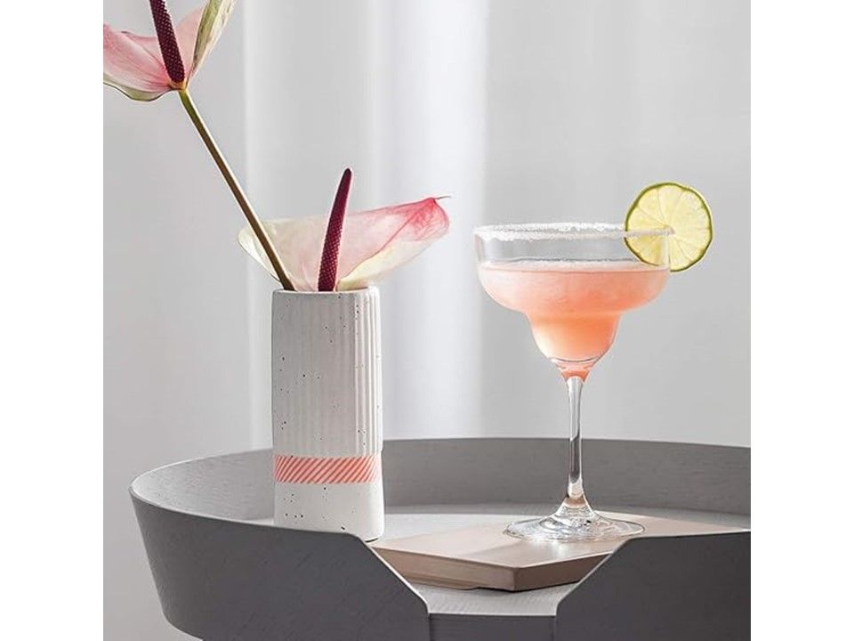 La copa Margarita tiene una forma distintiva con borde ancho y extendido, lo que permite disfrutar plenamente del aroma y el sabor de la bebida. La forma de la copa también facilita la adición de sal en el borde si se prefiere servir el Margarita con sal.