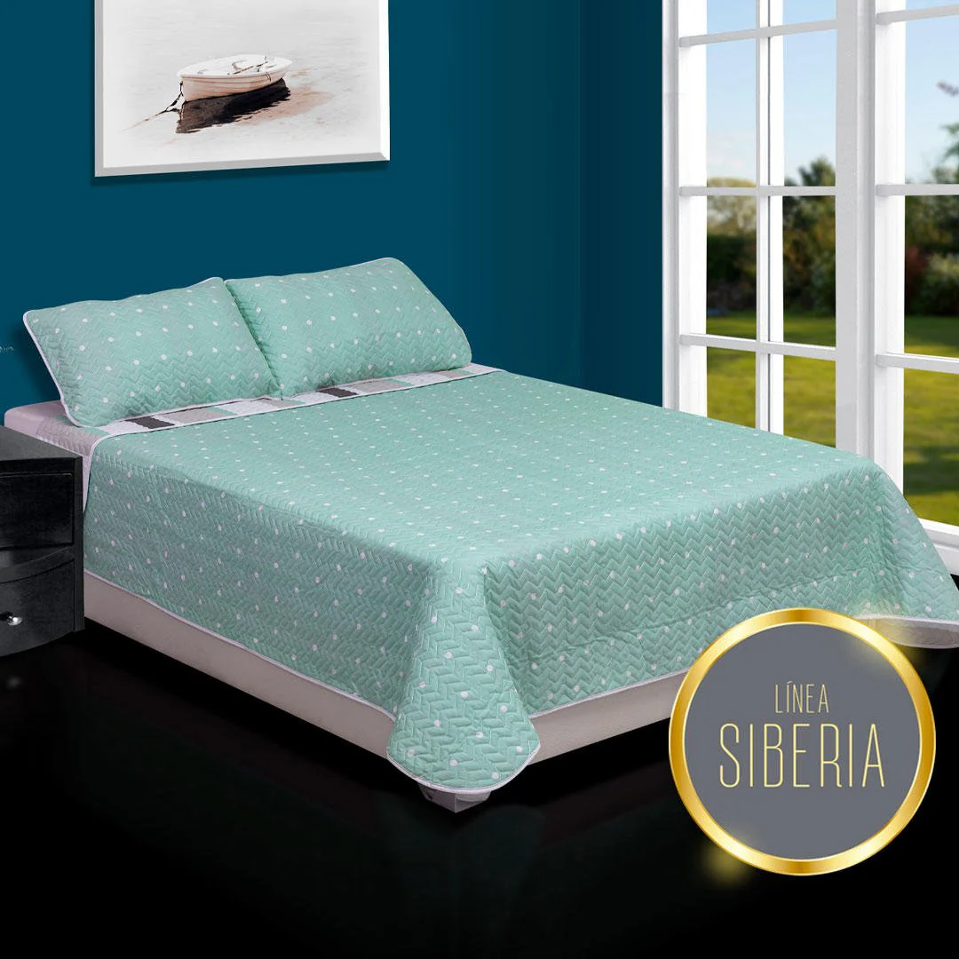 Sé el primero en valorar “Cubrelecho Español Prensado Verde Menta para Cama Doble 140 X 190 Cm Doble Faz de Lineas Y Puntos”