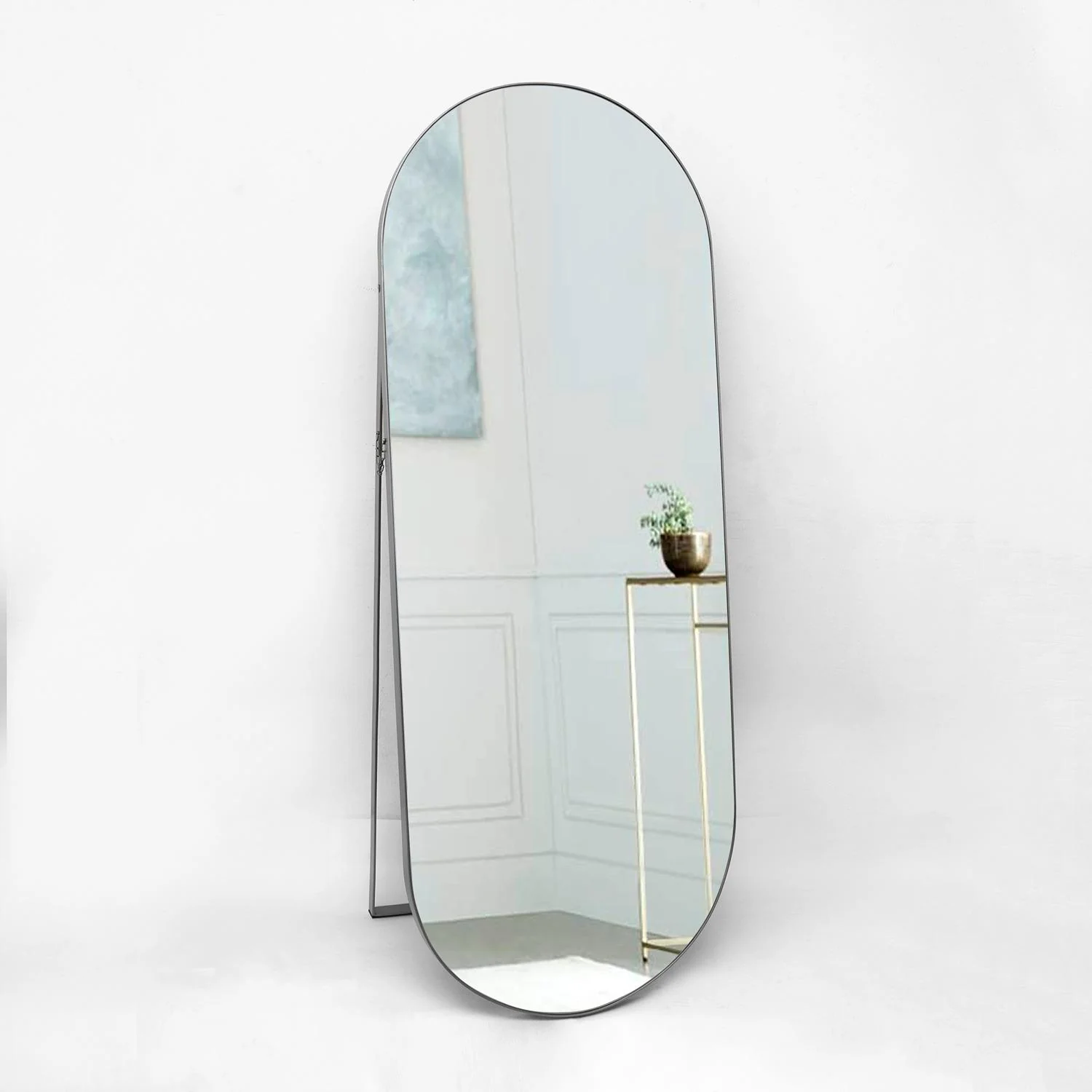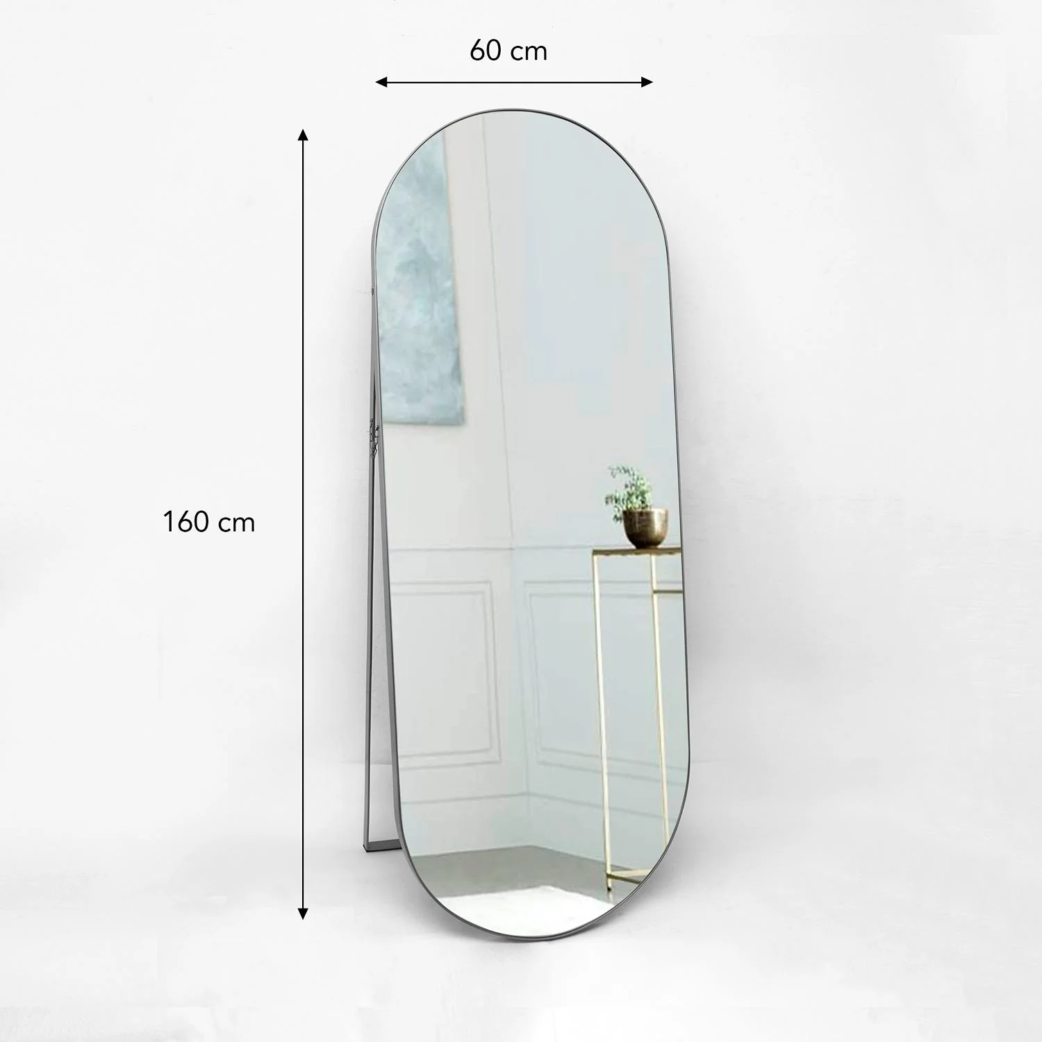 Espejo de Piso Mayorca Plata 60x160cm Ovalado con Marco Metálico