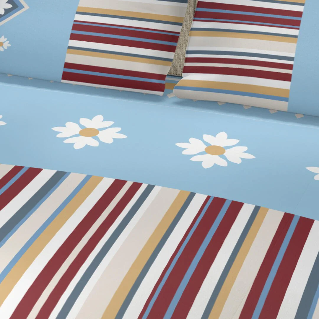 Juego de Sabanas Azul Semidoble 120 X 190 Cm de Lineas con 180 Hilos