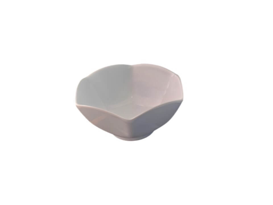 El Ramekin es un pequeño recipiente de cerámica de forma hexagonal y color blanco.