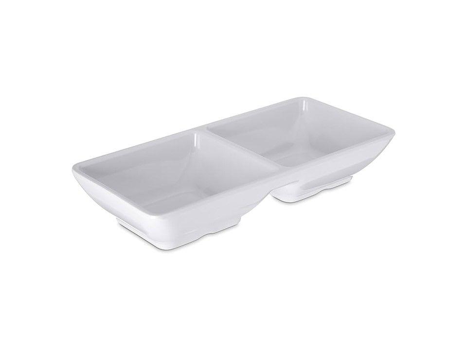 El Salsero Cuadrado Doble de Melamina de 2 oz es un práctico recipiente diseñado para servir salsas y condimentos.
