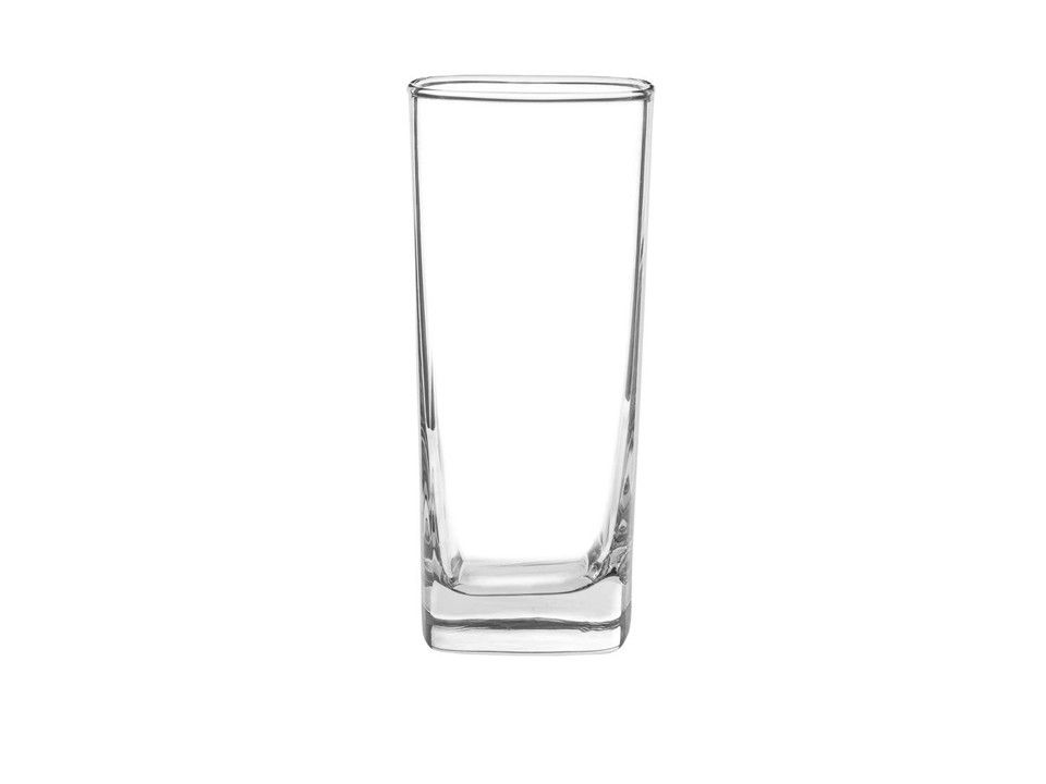 Con un diseño cuadrado y sólido, este vaso es ideal para servir bebidas.